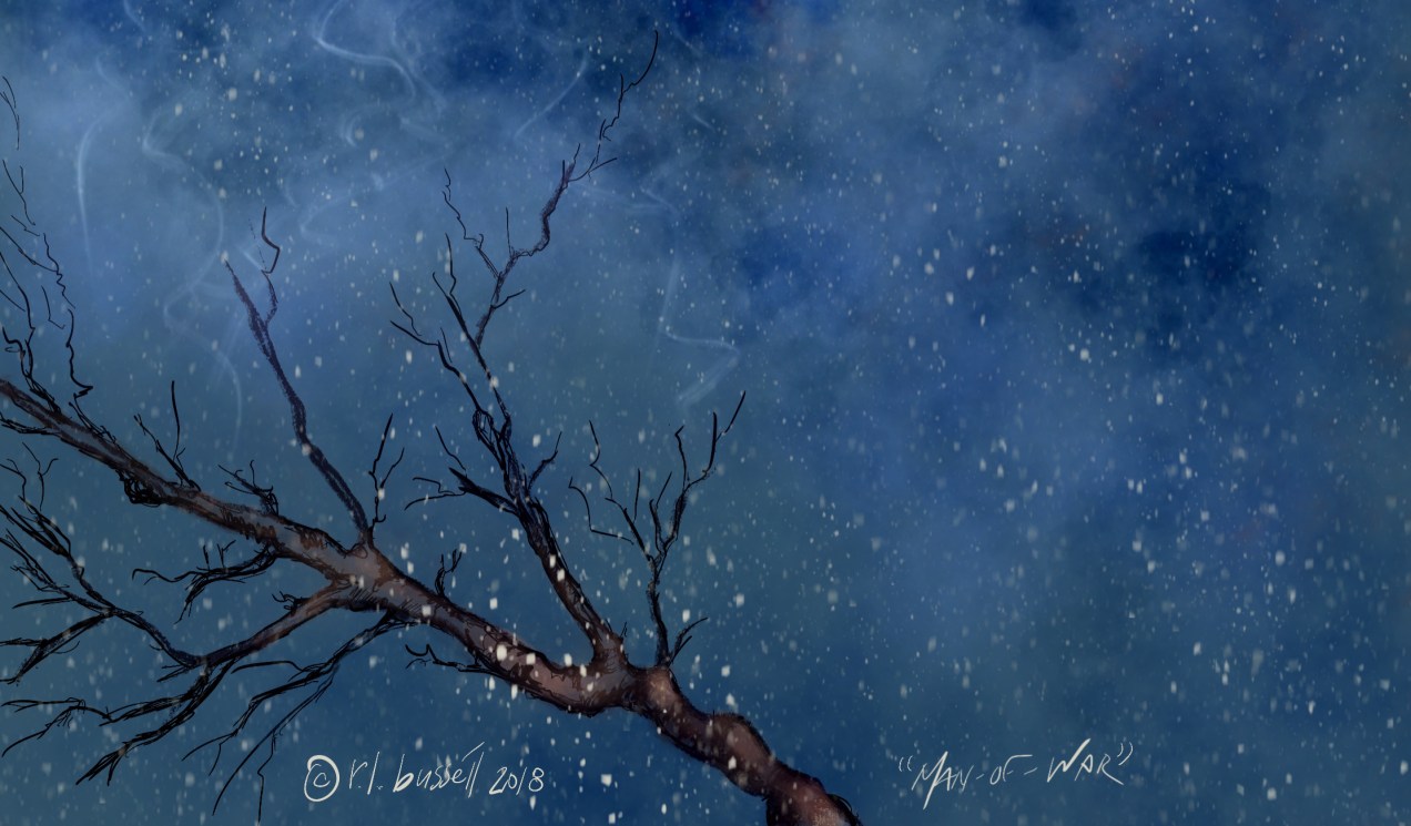 a tree in the snow tendrils from the sky